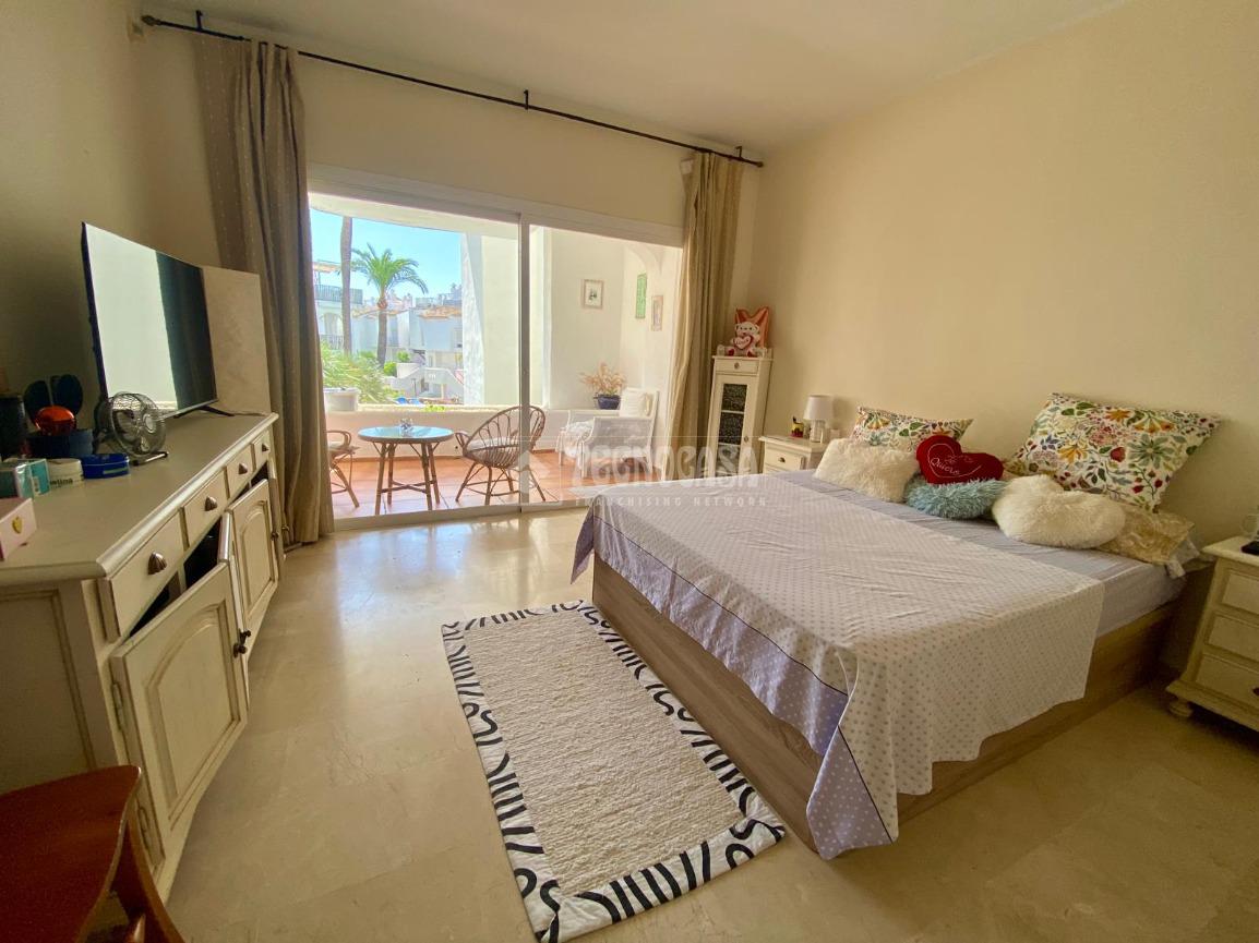 Cuenta con dos dormitorios espaciosos, ambos con armarios empotrados, y dos baños completos, uno de ellos en suite, ofreciendo comodidad y privacidad.